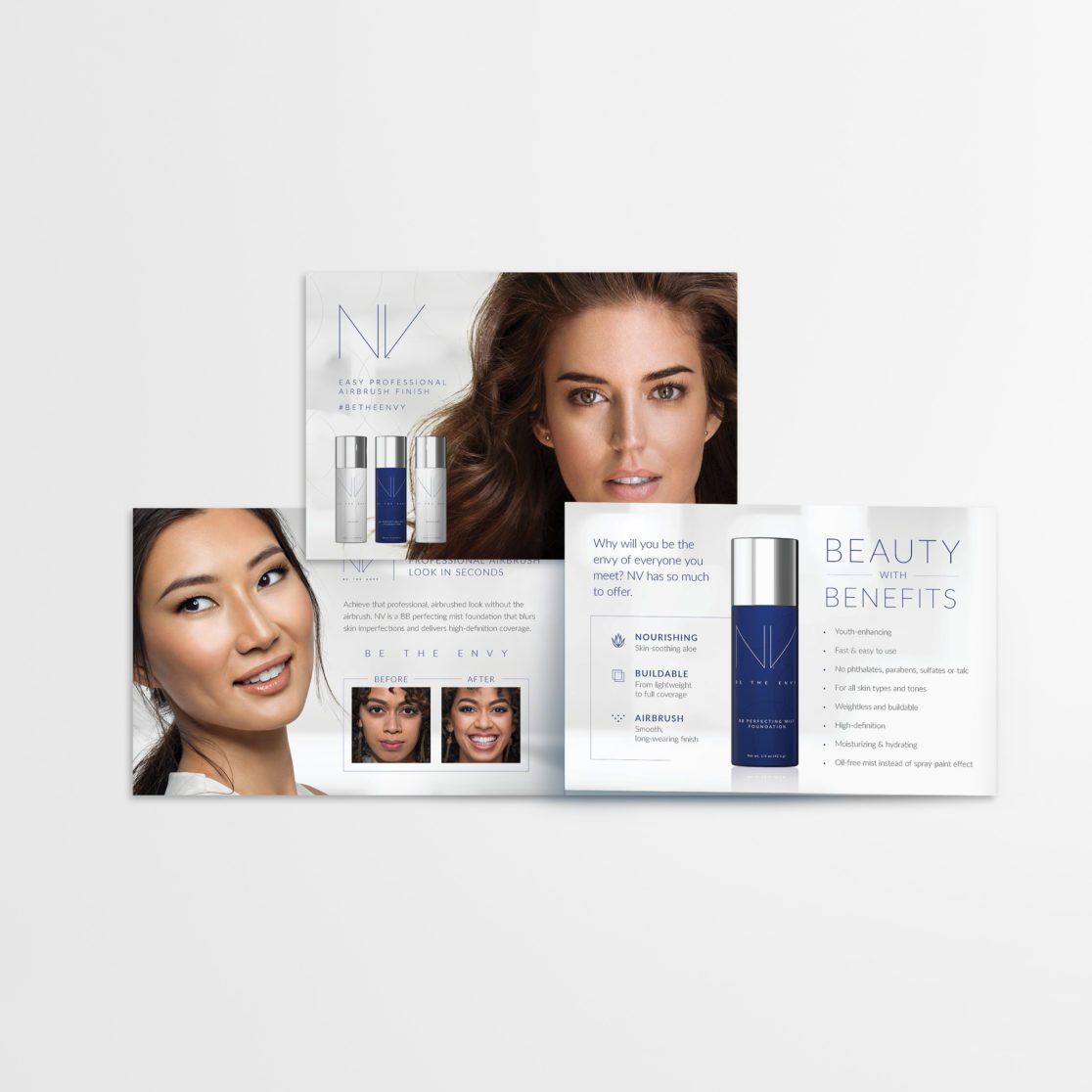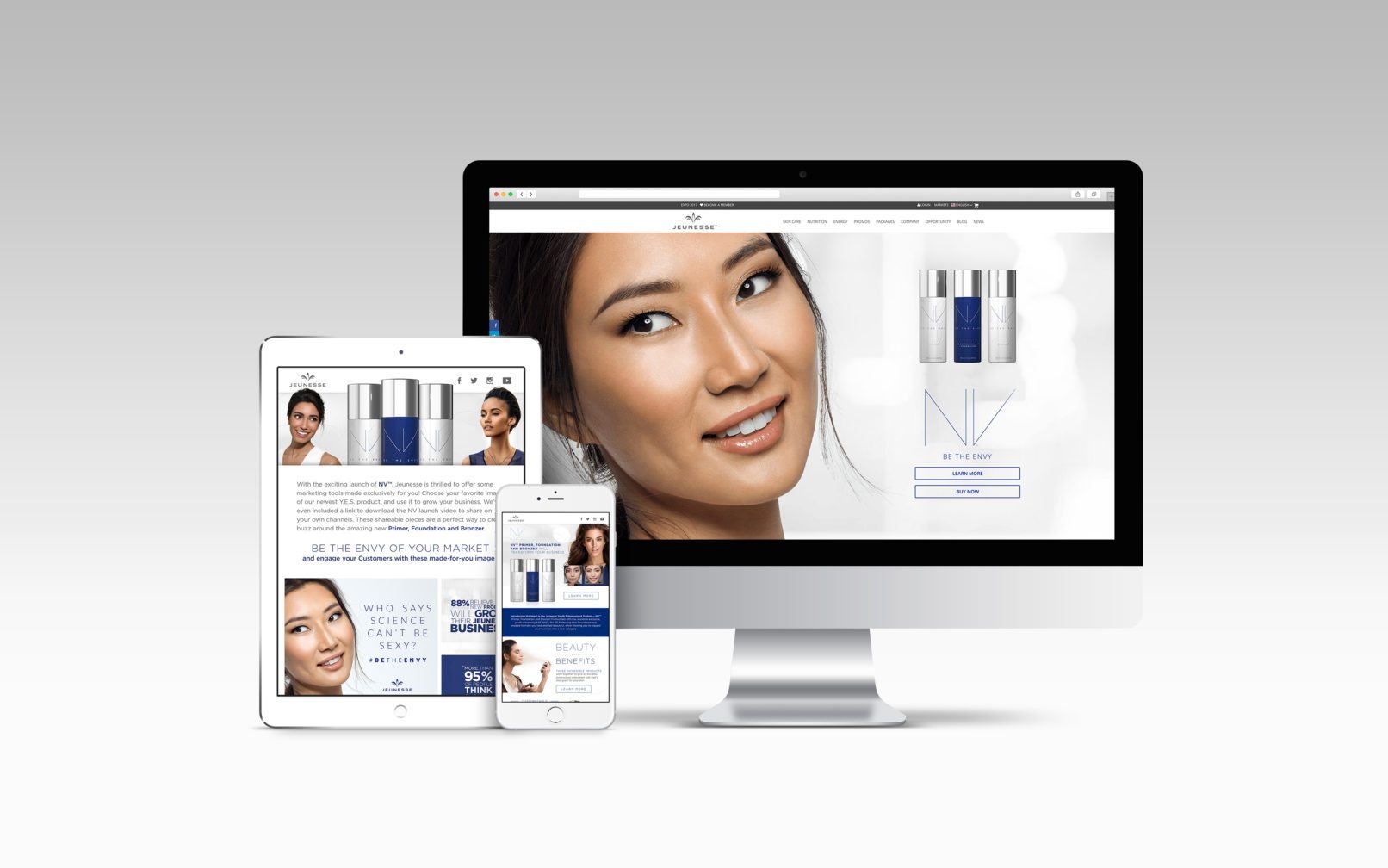 NV by Jeunesse – Launched during Jeunesse’s 2017 LEAD event in Las Vegas – is an innovative makeup product that promotes youthful beauty. I was given the opportunity to design this whole brand from scratch, which was a challenging yet rewarding experience. I designed the packaging, all promo material for different mediums including social media, signage for events, product flyer and mailer, etc. This package design won a Platinum award for print creativity at the 2017 MarCom Awards, and was also among the winners at GDUSA 2018 Package Design Awards.