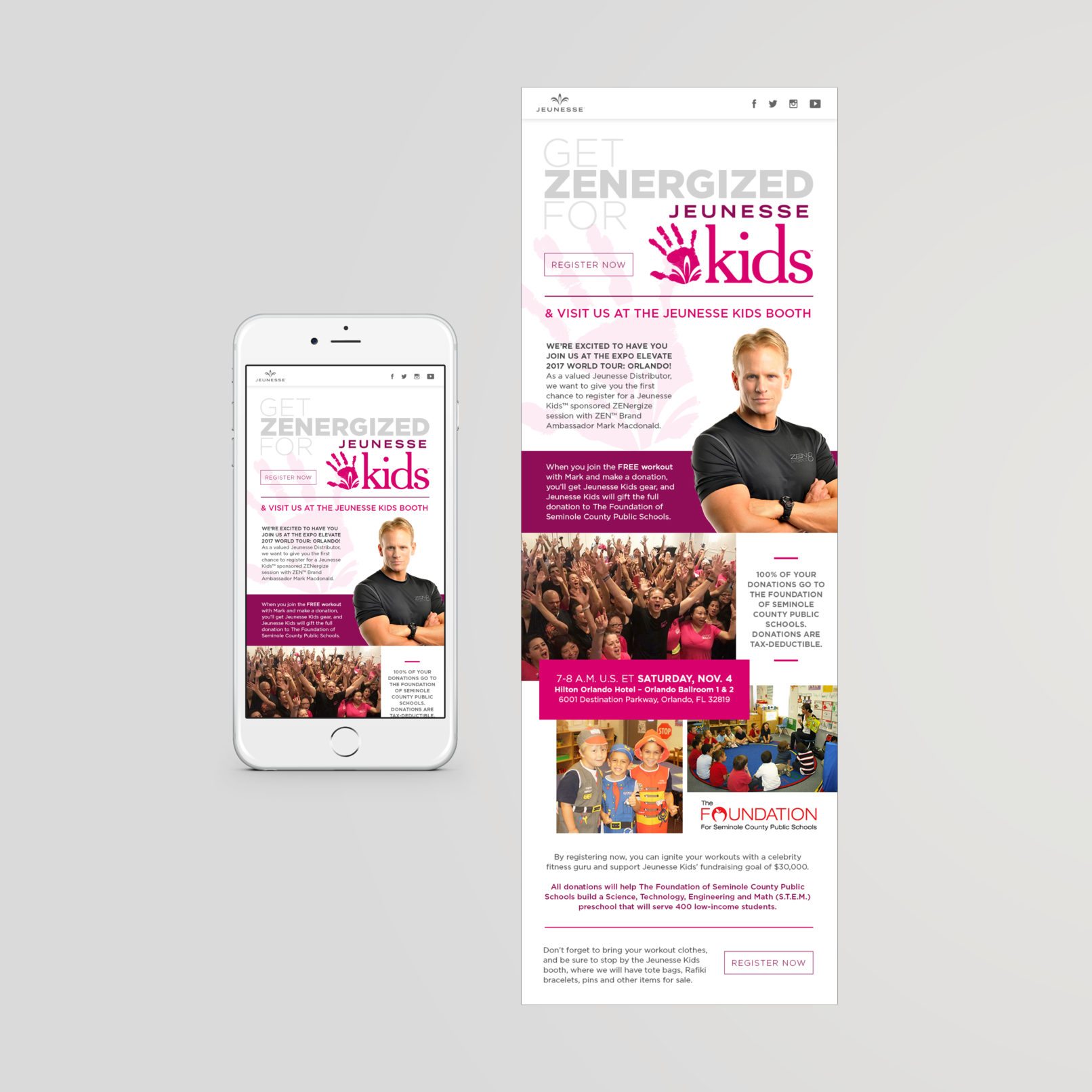 While working at Jeunesse I’ve had the opportunity to design for multiple brands. This includes designing signage for events, e-blasts, social media campaigns, PowerPoint presentations, flyers, etc.